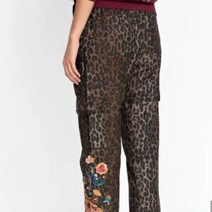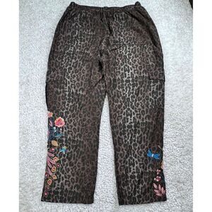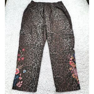 Johnny Was Workshop Shuri Leopard Embroidered Floral Cargo Pants, Gently preowned in excellent condition. No stains, rips or holes. Worn twice. Super comfy pants!