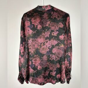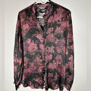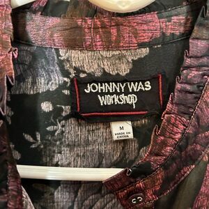 Johnny Was Workshop Silk Floral Print Button Up Top