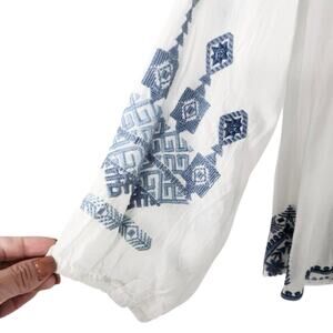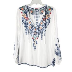 Johnny Was XL White Boho Embroidered Peasant Blouse Tunic Top Bohemian Chic