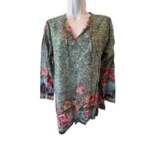 Johnny Was XS Blouse Vibrant Floral Cotton Embroidered Swing L/S Tunic Shirt