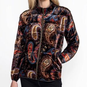 Johnny Was XS Sezana Velvet Paisley Dolman Sleeve Stand Collar Quilted Jacket