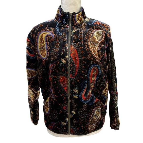 Johnny Was XS Sezana Velvet Paisley Dolman Sleeve Stand Collar Quilted Jacket