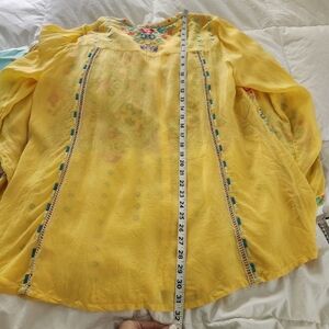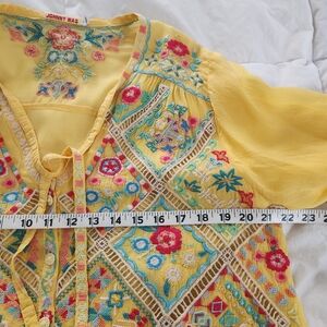 Johnny Was Yellow Embroidered Shirt Ladies Size Large Embroidered Boho Hippie , no stains no smells no snags excellent preowned condition. See photos for measurements and verify fit.