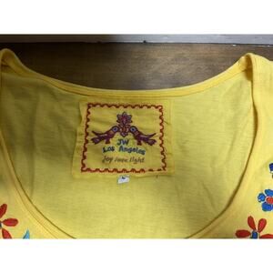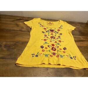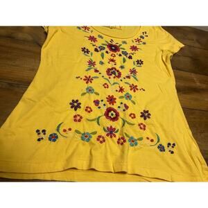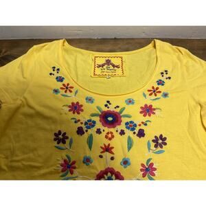 Johnny Was Yellow Floral Embroidered Short Sleeve Top Size Large Boho