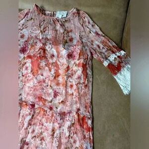 Johnny Was Yours Truly Silk Floral Mini Dress Lace Trim Sz Medium MSRP $410
