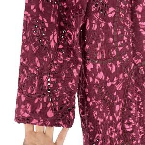Johnny Was Zaragoza Linen Lace Double Breasted Trench Coat Red Size S