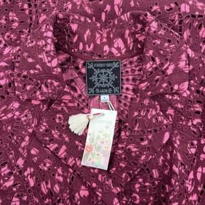 NEW Johnny Was Zaragoza Linen Lace Double Breasted Trench Coat Red