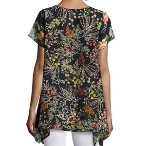 Johnny Was Ziara Printed Handkerchief-Hem Tunic, Size Small Mixed Floral
