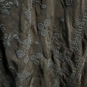 In very good pre-owned condition. Black with dark blue embroidery all over. Just what you need when you’re heading out to complete your ensemble!