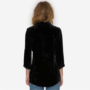 Johnny Was black Roberta Velvet Smocked Blouse with floral embroidery NWOT
