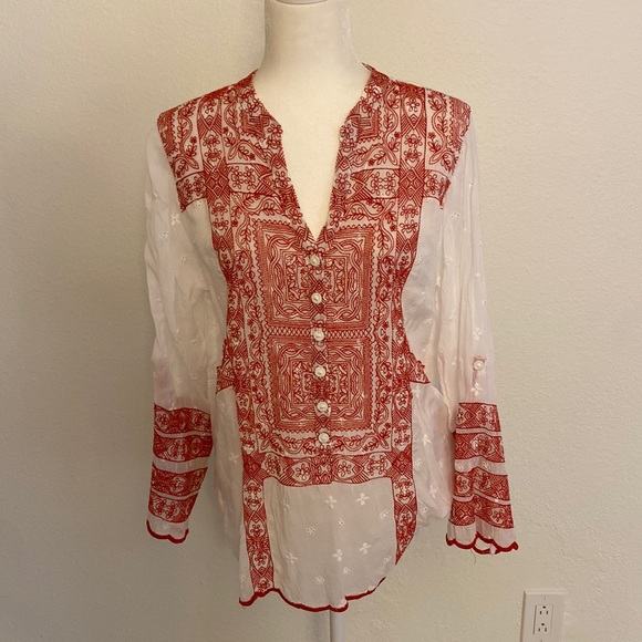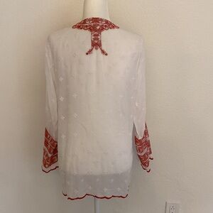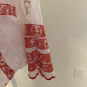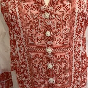 Beautiful white blouse with red embroidery. 💯 cupra rayon. Excellent condition.