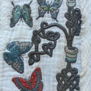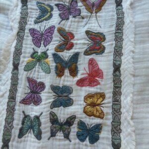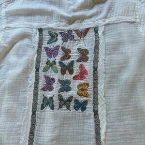 Beautiful cotton Johnny Was blouse with lots of butterfly embroidery, generous size small, could be a medium. Can be worn buttoned up or open over a t shirt. No signs of wear or damages.