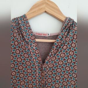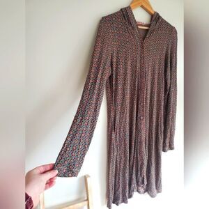 Johnny Was brown aaand teal printed hooded button up jersey dress in siz…