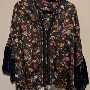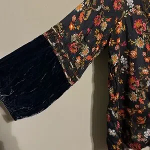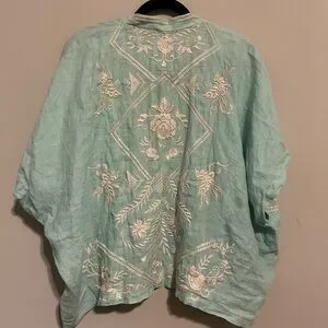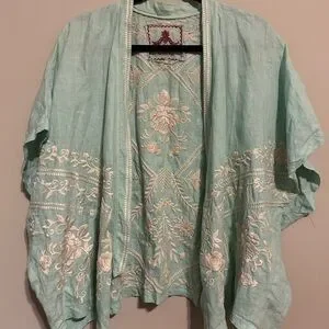 Johnny Was bundle. Includes one silk and velvet quarter sleeve peasant type blouse and the other is a linen short sleeve open top, with intricate cream embroidery. It has a Flowing design with open front. Perfect for layering.