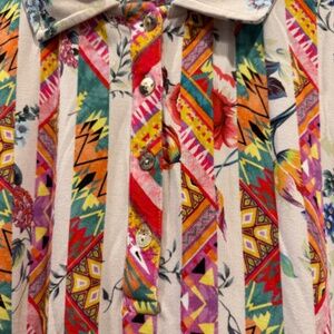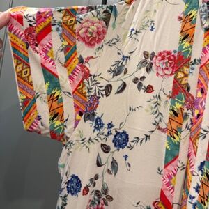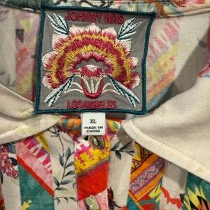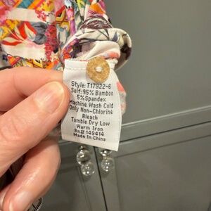 Johnny Was, cream background colorful floral, short sleeve polo shirt