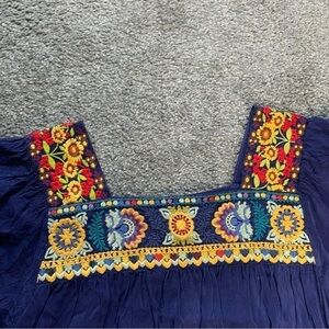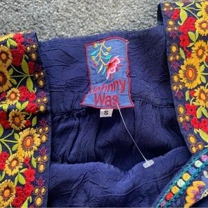 Johnny Was embroidered cap sleeve cinched waist mini dress
