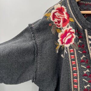 Johnny Was embroidered issoria cotton pullover sweatshirt boho popover top L