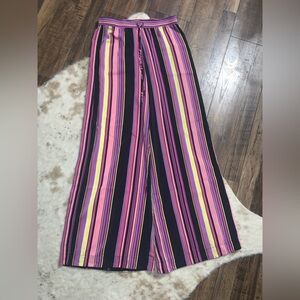 Johnny Was jade silk purple black fall striped boho Rue pant Xs wide leg $200