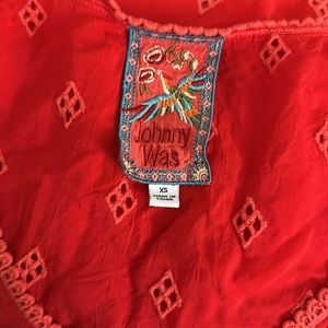 Johnny Was red embroidered tank top in great condition no rips or stains