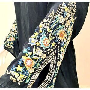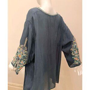 Johnny Was teal embroidered cupro tunic, V-Neck 3/4 Sleeves , Plus size 2/3X