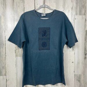 Johnny Was vintage t-shirt tunic floral applique dusty blue color one size
