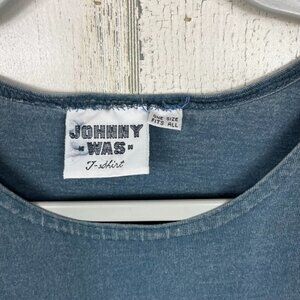 Johnny Was vintage t-shirt tunic floral applique dusty blue color one size boho