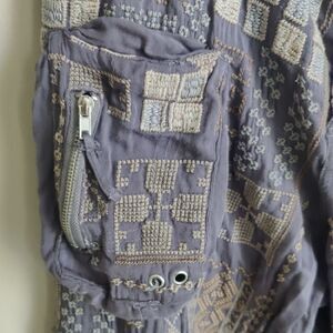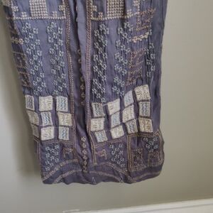 Johnny Was chic pants featuring a geometric pattern. Includes a matching belt and a casual style. Great pre-owned condition. Size S. Waist laying flat 16".