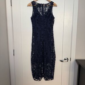Johnny Was Jade Maxi Dress XS Blue Sleeveless Eyelet Lace Embroidery Crochet