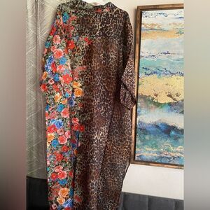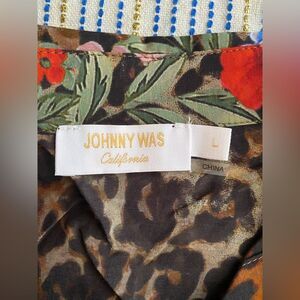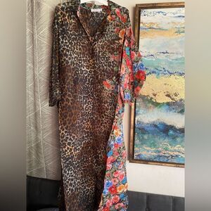Johnny Was Leopard Button Down Shirt Dress Long Sleeve Floral Chiffon Sz L NEW