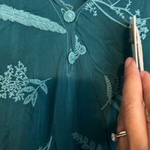 Elegant blue maxi dress with delicate embroidery. Flattering and versatile. Perfect for any event.