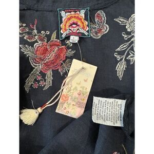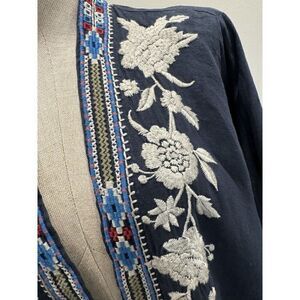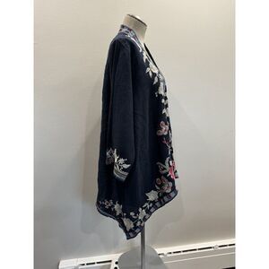 Johnny Was NWT Florence Linen Draped Cardigan in Navy Size L