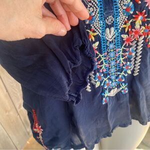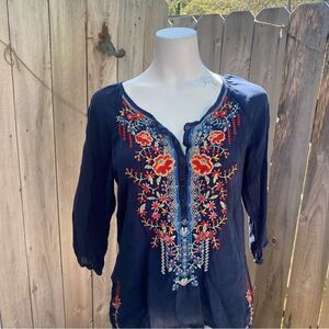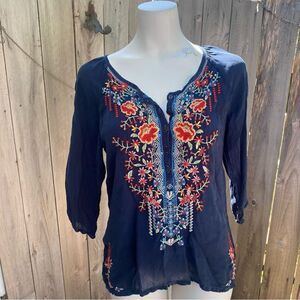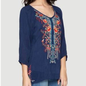 Johnny Was Olivia Blue Embroidered Boho Top Size Small Petite