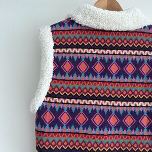 Johnny Was Vest Women Small Yuya Sherpa Alpaca Blend Aztec Boho Print Jacket NWT