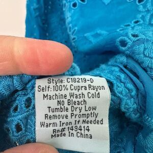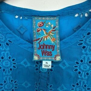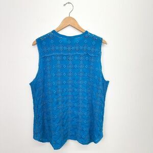 Johnny Was Women’s Blue Floral Symmetrical Boho Eyelet Sleeveless Blouse