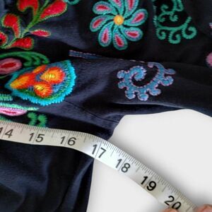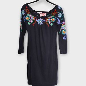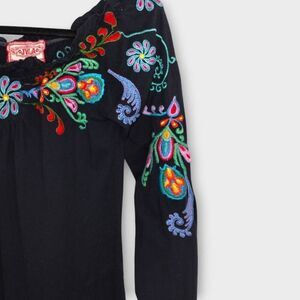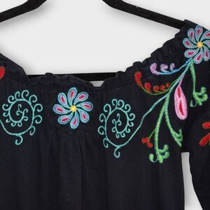 Johnny Was Womens Dress Sz XS Black Red Embroidery Off Shoulder Bohemian Swiftie