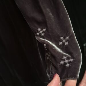 Elegant velvet top with intricate embroidery. Perfect for adding a touch of sophistication to any outfit.