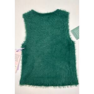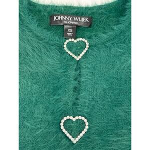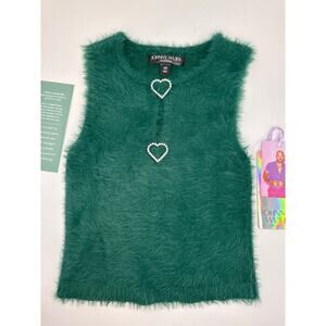 Johnny Wujek Juniors Fuzzy Knit Top XS Teal with Rhinestone Heart Accents