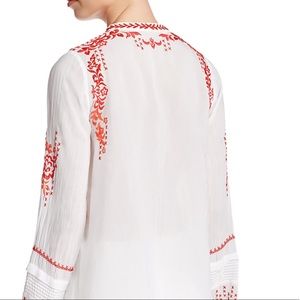 This tunic has some gorgeous thoughtful detailing like pintuck stitching across the yoke as well as at the cuffs, a classic mandarin collar, and half button placket. The bold embroidery design of flowers and traditional cross-stitch give this mid-length pull-on top an heirloom quality youโll treasure for years to come.