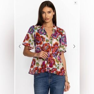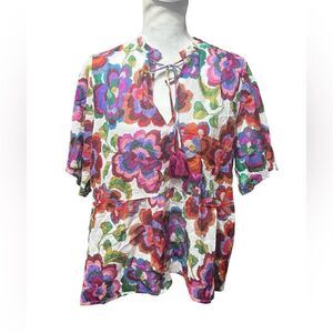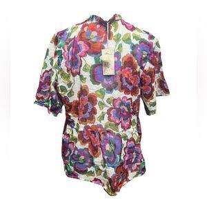Johnny was calanthe high low empire waist top cream floral lightweight xl