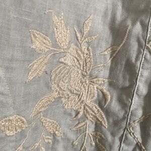 Excellent condition, embroidery is a rich cream, and the vest itself is kind of a slate blue, gray. Size small no flaws or marks that I can find. Pit to pit 21”