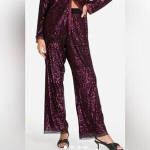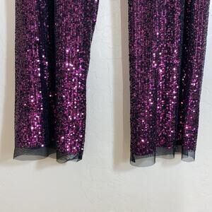 Johnny was grace sequins wide leg pants. Drawstring waist. Purple/pink sequins with black sheer overlay. Size M. Approximate measurements