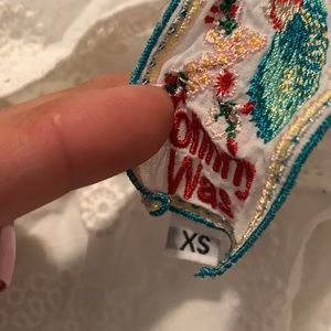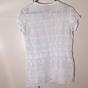 Beautiful Johnny Was blouse. V neck, sheer white with embroidery. True to size. Has light discoloration on underarms besides that it's in great condition
