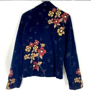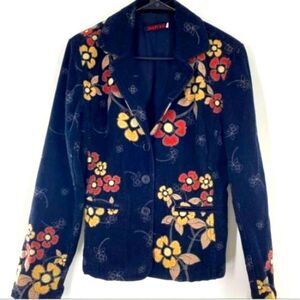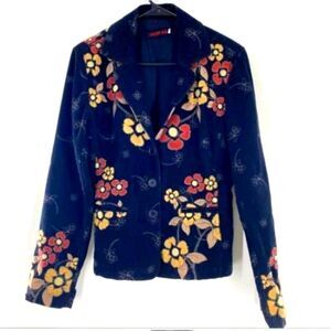 Johnny Was Corduroy Dark Navy Embroidered Floral Long Sleeve Blazer Jac…