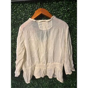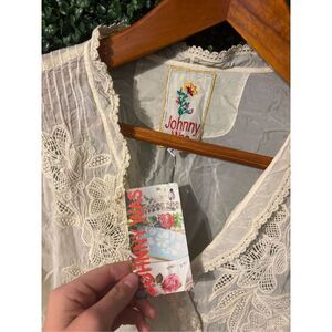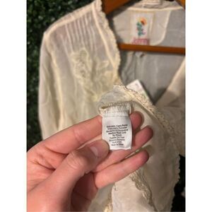 Johnny Was Cream Ivory 3/4 Sleeve Cupra Rayon Boho Embroidered Top Sz Large