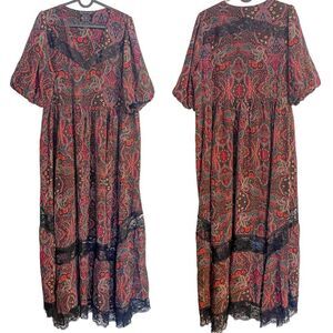 Johnny Was Dame Silk Paisley Lace Inset Midi Dress M