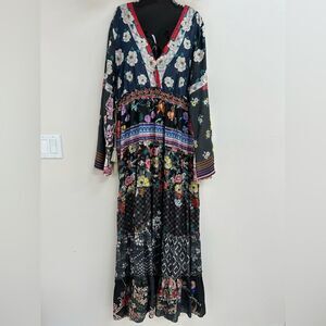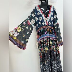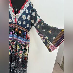 Johnny Was Dunas Gypsy Silk Floral Maxi Dress L