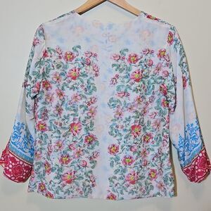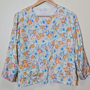 Johnny Was Floral Cardigan Blouse XS Silk Cupra Rayon Button Front Reversible