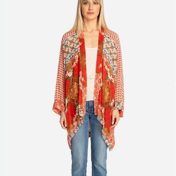 Johnny Was Kimono Red Mixed Print XL