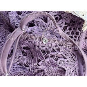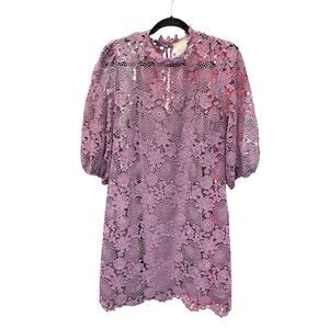 Johnny Was Lorrie Purple Crochet Lace Mini Dress Puff Sleeves Size Medium