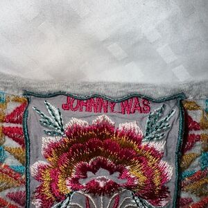 Johnny Was Ornelia Embroidered Capped Sleeve Grey Hi-Lo Tee- XS- like new!